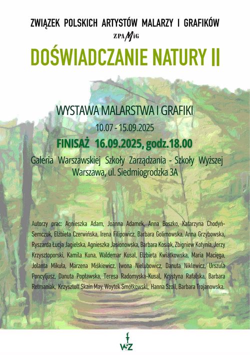 Zapraszamy na poplenerową wystawę malarstwa do Galerii Warszawskiej Szkoły Zarządzania - Szkoły Wyższej ul. Siedmiogrodzka 3A.