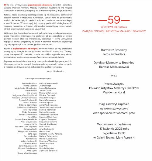 - Wystawa „59” w Muzeum w Brodnicy od 21 marca do 15 maja